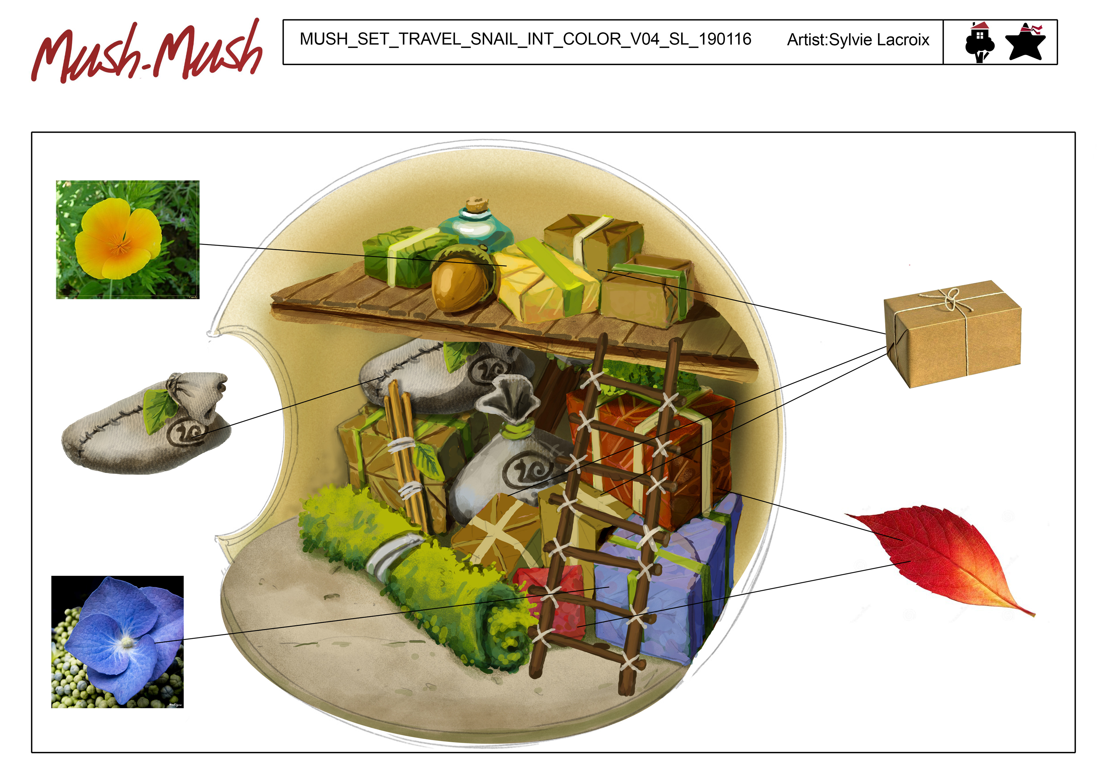 For this TV show produced by La Cabane Productions and Thuristar, I was in charge to adapt the 2D black and white designs of the author Elfried de Rooster to paintings that gives info about volumes, colors, and shaders.