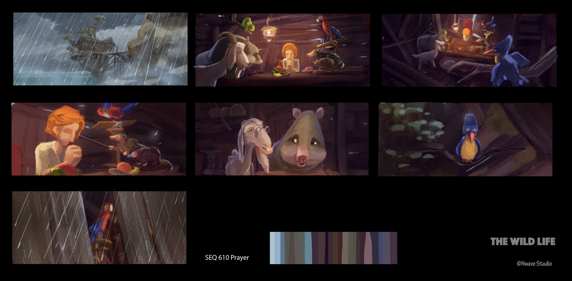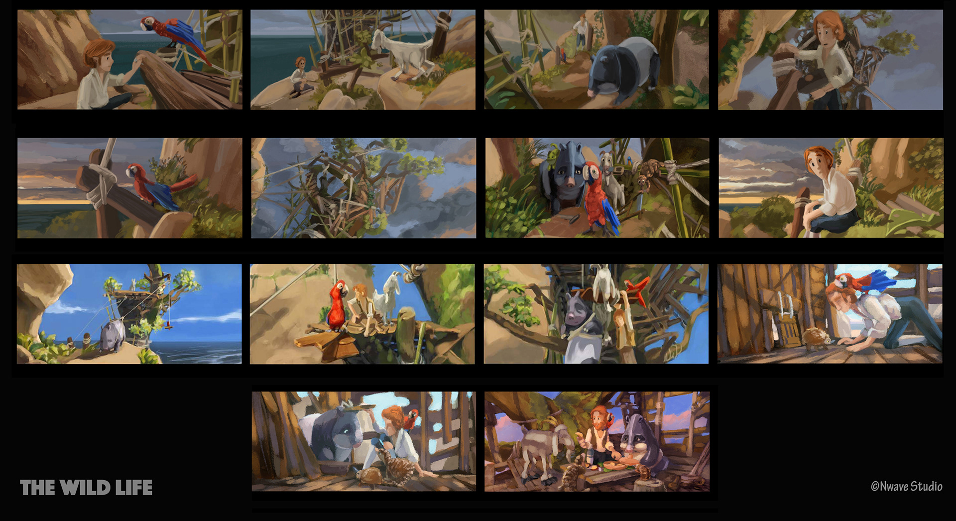 Here are some sequences from the colorscript I have done for the CG animated movie The Wild Life Produced by the Nwave Studio in Brussels and Directed by Vincent Kesteloot and Ben Stassen